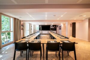 Pour les groupes en séminaire, les sessions de travail se déroulent dans un espace business de 90 m², modulable en deux salles. S’ajoute une salle de sous-commission de 24 m² pour des réunions plus restreintes de 8 personnes maximum. Les voyageurs business en solo ne sont pas oubliés, avec des espaces propices au coworking.