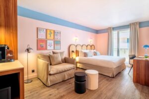 Pour convaincre des clients très divers, l’endroit se veut décontracté, pas branché, proposant des activités de loisirs ouvertes à tous, telles le karaoké (avec deux salles dédiées), la pétanque, le ping-pong, le baby-foot, les jeux d’arcades, la détente et le bien-être avec une salle de fitness. Une autre force de l’hôtel, c’est son offre de restauration, avec une cuisine de brasserie traditionnelle servie dans trois ambiances distinctes : le corner brasserie (40 places), Dolce Vita (46 places) et Méditerranée (68 places), sans oublier le Rooftop (66 places) pour goûter aux cocktails et tapas